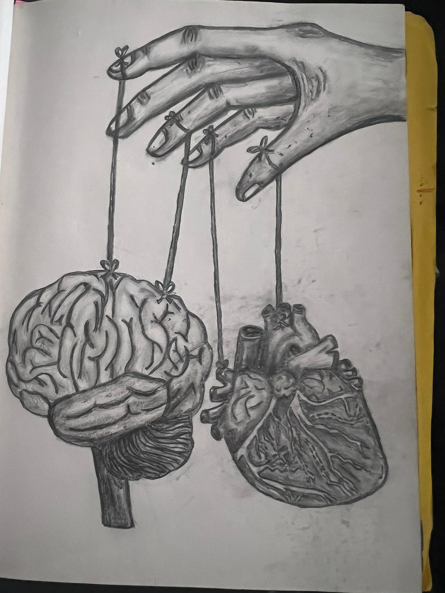 Over time, my understanding shifted. What once felt like invisible strings of control began to look more like the quiet presence of something steady guiding me through the chaos. I titled it, “God is the Ultimate Puppeteer.”